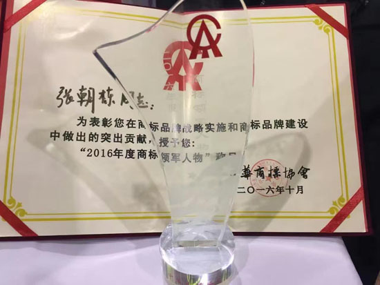 東靈通董事長(zhǎng)張朝棟獲評(píng)(商標(biāo)服務(wù)機(jī)構(gòu)組)“2016年商標(biāo)領(lǐng)軍人物”獎(jiǎng)。